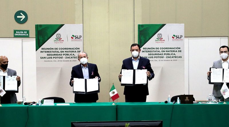 Zacatecas, Zac. – Los Gobernadores de San Luis Potosí, Juan Manuel Carreras López y de Zacatecas, Alejandro Tello Cristerna, firmaron un convenio de coordinación en materia de seguridad pública, para establecer acciones conjuntas contra el delito en las zonas limítrofes de ambas entidades, entre las que destaca la cooperación e intercambio de información, acciones de inteligencia, evaluación periódica de resultados, así como el reforzamiento de la presencia de elementos policiales, del Ejército y Guardia Nacional.