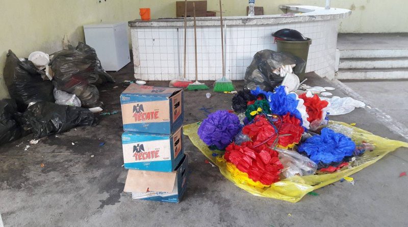 Desde redes sociales se comparten imágenes que fueron tomadas el día de hoy alrededor de las 6 de la tarde dentro del auditorio de Chapulhuacanito Tamazunchale en total abandono por parte de las autoridades del lugar, cabe señalar que este lugar es utilizado para actividades deportivas por gente del lugar, en las imágenes que se hicieron llegar a este medio se puede observar restos de fiesta y basura.