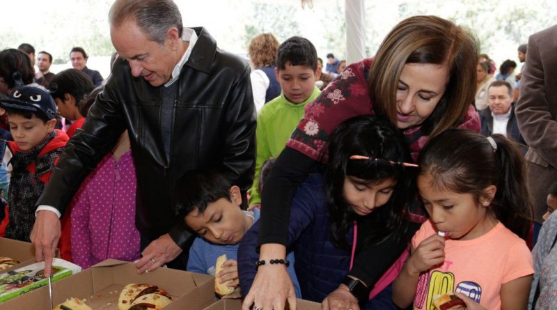 - Juan Manuel Carreras y Lorena Valle compartieron Rosca de Reyes con niños y niñas de diversas instituciones.