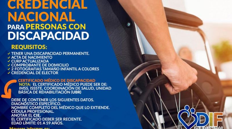 DIF MUNICIPAL INVITA A REALIZAR TRÁMITE PARA CREDENCIAL NACIONAL PARA PERSONAS CON DISCAPACIDAD.