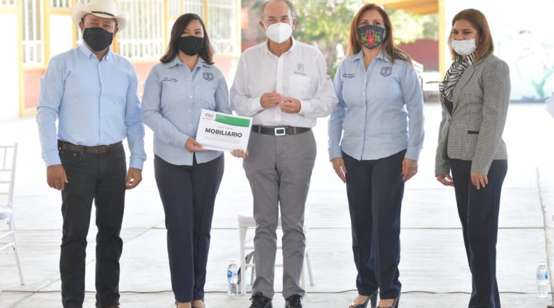 Durante el evento, las escuelas Primarias “Felipe de Jesús Espinoza”, “Tierra y Libertad” y la Secundaria “Plan de San Luis”, recibieron mobiliario y equipo didáctico, lo que permitirá que alumnos y docentes cuenten con más y mejores herramientas.