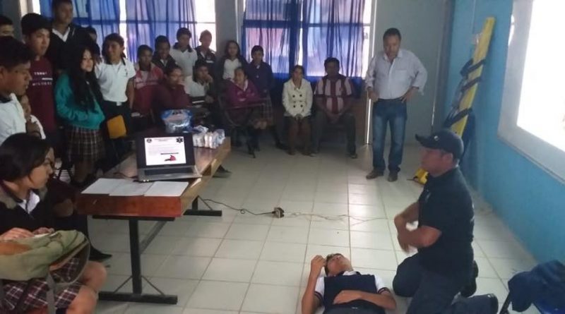 Axtla.-A petición del COBACH 40 de la localidad de Chalco, la coordinación de Protección Civil acudió a impartir un curso de primeros auxilios el cual abarcó el procedimiento del primer respondiente en personas desmayadas o accidentadas y diferentes tipos de vendajes teóricos y prácticos, el cual se impartió a 49 alumnos y de 2o. 4o. Y 6o, semestre y 3 maestros.