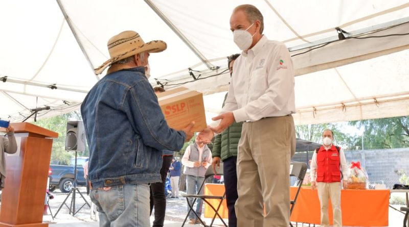 Mexquitic de Carmona, S.L.P.- Con el objetivo de mejorar las condiciones de vida de las familias de este municipio, el Gobernador del Estado, Juan Manuel Carreras López y la Presidenta de la Junta Directiva del Sistema Estatal para el Desarrollo Integral de la Familia (DIF), Lorena Valle Rodríguez, entregaron  granjas avícolas de traspatio, bicicletas del programa “Una Bici con Rumbo”, paquetes para bebés, así como despensas y sillas de ruedas, para atender las necesidades de las comunidades ante la contingencia sanitaria.