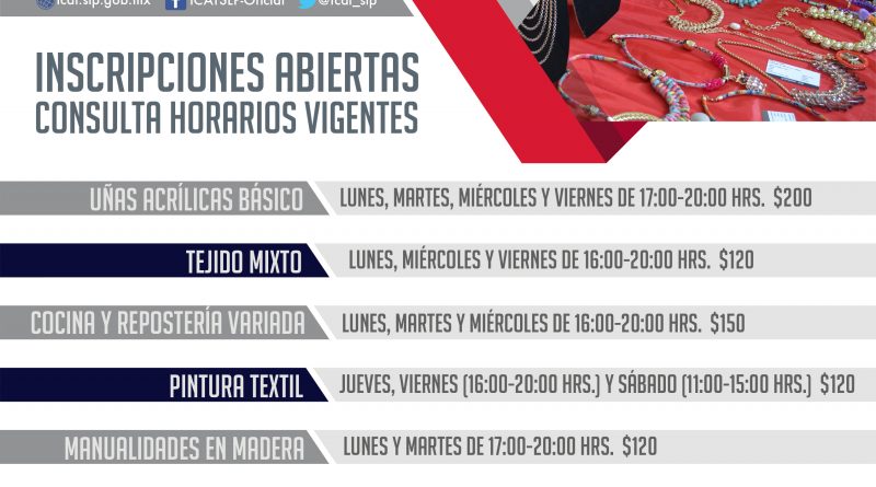 Las personas interesadas pueden consultar los horarios y cursos en nuestra página de Facebook /ICAT SLP – Oficial