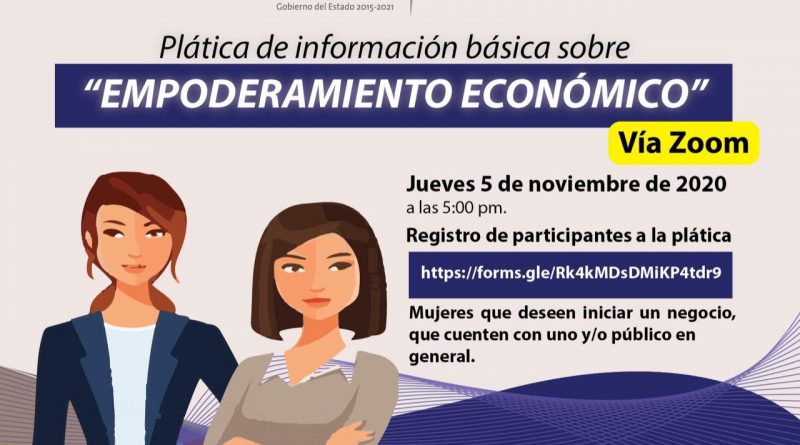 Para fomentar el desarrollo económico de las mujeres y su incursión en el mercado laboral, el Instituto de las Mujeres del Estado (IMES), a través del área de capacitación, invita a la plática “Empoderamiento Económico”, que se realizará este jueves 5 de noviembre a las 17 horas a través de la plataforma Zoom, informó Erika Velázquez Gutiérrez, titular de la dependencia.