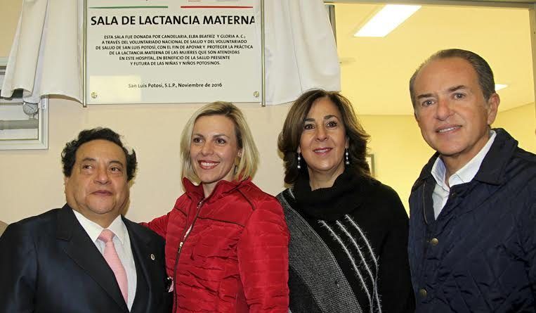 El Gobernador del Estado Juan Manuel Carreras López y la presidenta del Voluntariado Nacional de Salud, María del Carmen Narro Lobo, inauguraron la Sala de Lactancia Materna del Hospital del Niño y la Mujer, que fue equipada por la Asociación Civil Candelaria, Elba Beatriz y Gloria, para apoyar y proteger la práctica de la lactancia, en beneficio de la salud presente y futura de las niñas y niños potosinos.