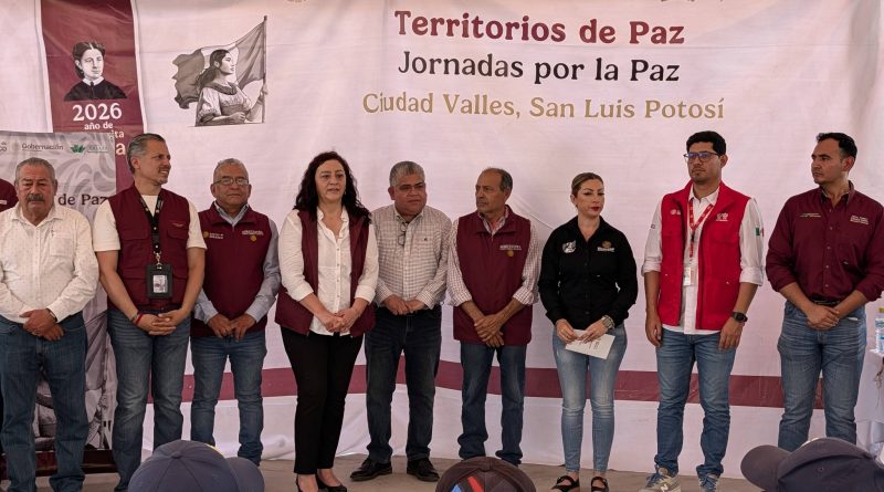CIUDAD VALLES, S.L.P. – El H. Ayuntamiento de Ciudad Valles, en coordinación con el Gobierno Federal, a través de la Secretaría de Gobernación, llevó a cabo este jueves la tercera Jornada por la Paz en la colonia Lázaro Cárdenas, como parte del primer eje de la estrategia nacional de seguridad impulsada por la Presidenta de México, Claudia Sheinbaum Pardo, en la que Ciudad Valles forma parte de los 61 municipios integrados como Territorios de Paz en el país.En representación del Presidente Municipal David Armando Medina Salazar, asistió el Secretario General del Ayuntamiento, Luis Ángel Contreras Malibrán, quien reiteró el compromiso del Gobierno Municipal de continuar impulsando acciones que permitan acercar servicios a la población, mediante el trabajo coordinado entre los tres niveles de gobierno.En su intervención, la Coordinadora de los Territorios de Paz, Martha Beatriz López López, agradeció el respaldo del Gobierno Municipal y destacó que estas jornadas se continuarán llevando a las diferentes colonias de Ciudad Valles, con la finalidad de que la ciudadanía conozca de primera mano cada uno de los programas y apoyos que otorga el Gobierno Federal a través de la Secretaría del Bienestar. Durante la jornada se instalaron módulos de atención ciudadana con personal de distintas áreas municipales como la Dirección de Atención y Participación Ciudadana; Atención al Adulto Mayor; las Oficialías del Registro Civil; Atención a la Juventud; Cultura Física y Deporte, así como el Sistema Municipal DIF, entre otros más.Se contó con la participación de dependencias federales y estatales como Pensión para el Bienestar, Programa de Abasto Social, Infonavit, PRODECON, PROFECO, Correos de México, Secretaría de Infraestructura, Comunicaciones y Transportes, Becas para el Bienestar, Servicios de Salud, Cámara de Diputados de la LXIV Legislatura, Ejército Mexicano, Fuerza Aérea, Guardia Nacional, IMSS Bienestar y un módulo médico del ISSSTE, acercando diversos servicios a la población.Como parte de las actividades realizadas, se tomó protesta al Comité de Paz de la colonia Lázaro Cárdenas, integrado por vecinas y vecinos, quienes tendrán la tarea de dar seguimiento a las necesidades de su comunidad, fortalecer la organización social y colaborar con las autoridades en acciones de prevención y construcción de entornos más seguros Entre las autoridades presentes destacaron el Coordinador de Territorios de Paz en Ciudad Valles, Javier Elías Martínez Reyes; el Delegado de la PROFECO Zona Altiplano, Edgar Roberto Ríos Delgado; el encargado de la SADER en Ciudad Valles, Jesús Rodríguez Velázquez; el encargado de la Lechería del Bienestar en Ciudad Valles, Juan José Deveza Méndez; la Directora Regional en la Huasteca Norte de los Programas del Bienestar, Griselda Mezquida Saldaña; el Delegado del INFONAVIT en San Luid Potosí, Adán Romero Esparza; el Regidor César Ramos Clemente; funcionarios del Ayuntamiento de Ciudad Valles, Servidores de la Nación, habitantes y vecinos de la colonia Lázaro Cárdenas.