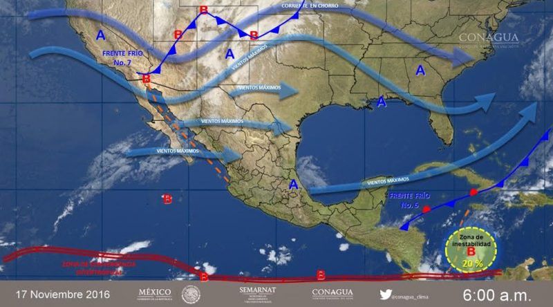 Derivado de una zona de inestabilidad ubicada en el sureste de México y al Frente Frío Número 7, que se aproxima al noroeste del país y se espera que comience a afectar al estado el próximo fin de semana, habrá bajas temperaturas y probabilidad de lluvias ligeras informó el director general de la Coordinación Estatal de Protección Civil, Jorge Roberto Farfán González.