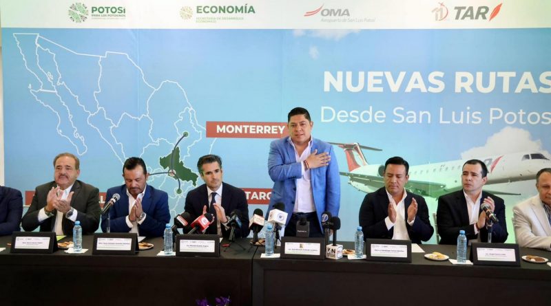 En el Aeropuerto Internacional de San Luis Potosí, acompañado por Ángel García Colín, director comercial de TAR Aerolíneas, y el director general de Grupo de OMA, Ricardo Dueñas Espriu, el Mandatario Estatal agradeció la confianza mostrada por estas dos empresas, resultado del crecimiento económico, la generación de empleos y la llegada de más inversión extranjera.