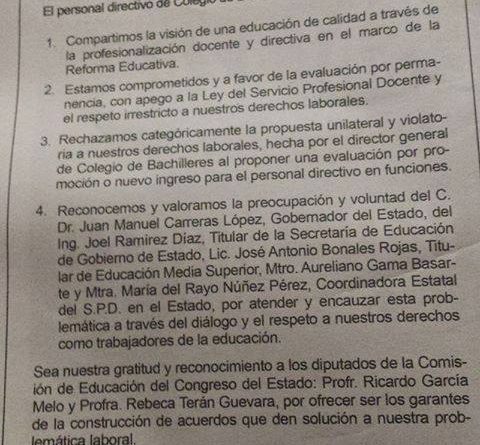 Pedirán la destitución inmediata del director general del colegio de bachilleres, hablan los maestros de que se ha violentado los derechos laborales y de que se ha hecho negocio con los alumnos y los padres de familia.