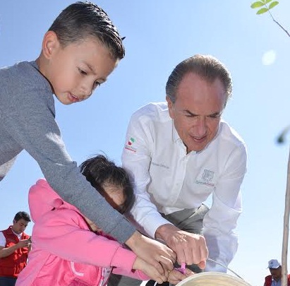Acompañado de su esposa Lorena Valle Rodríguez, presidenta de la Junta Directiva del DIF Estatal, del gerente estatal de la Comisión Nacional Forestal (Conafor) Martín Toranzo Fernández, y de la secretaria del Medio Ambiente y Gestión Ambiental Yvette Salazar Torres, el mandatario estatal reiteró su compromiso a favor mejorar las condiciones de nuestro medio ambiente.