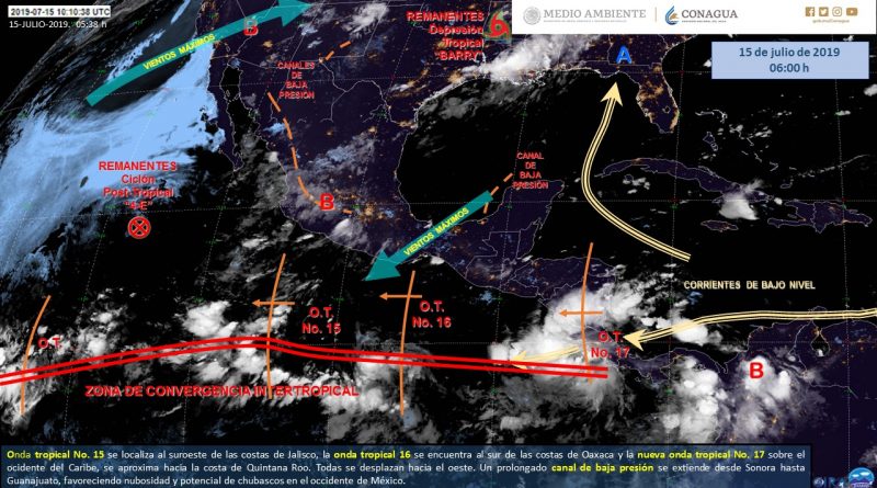 La dependencia estatal señaló que el Servicio Meteorológico Nacional, de acuerdo con las observaciones realizadas en los últimos días, apreció una disminución de las lluvias, lo que propicia un incremento de las temperaturas en el sur, el sureste, el noreste y algunas zonas del centro de la República Mexicana, por lo que se pronostica que el fenómeno de la canícula se establezca durante la segunda quincena de julio en dichas regiones.