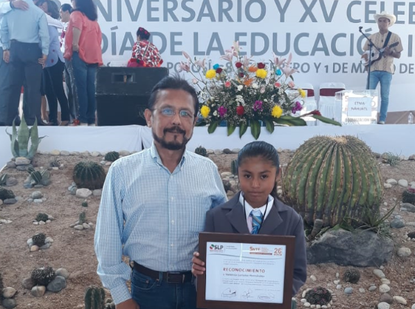 La Secretaria de Educación de Gobierno del Estado de San Luis Potosí y la sección 26 del Sindicato Nacional de Trabajadores de la Educación a través del Gobernador del Estado el Dr. Juan Manuel Carreras López reconoció a Vanessa Luciano Hernández, ya que ella fue la ganadora del primer lugar estatal de la “Olimpiada del Conocimiento infantil 2018” en la categoría Primaria Indígena, de la escuela primaria Adolfo López Mateos, de la localidad de Ahuehueyo, Tamazunchale.