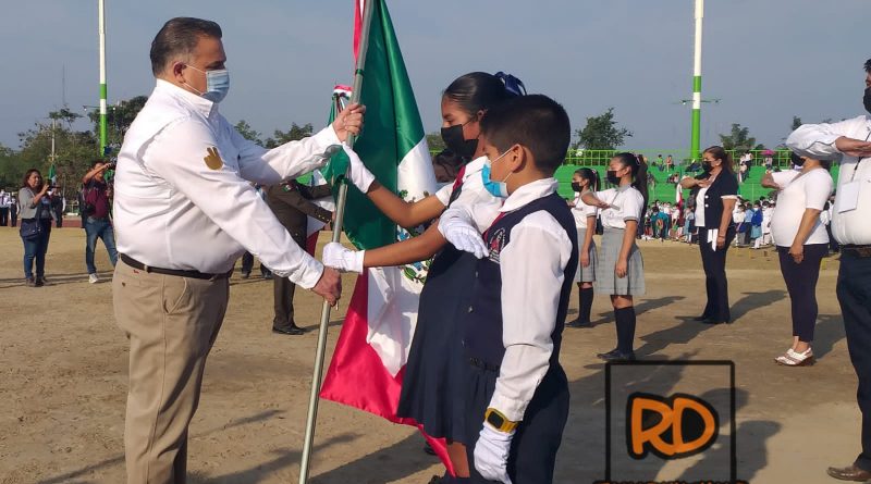 Durante el acto cívico también se llevó a cabo, la incineración de bandera de dos planteles educativos y abanderamiento de los mismos.