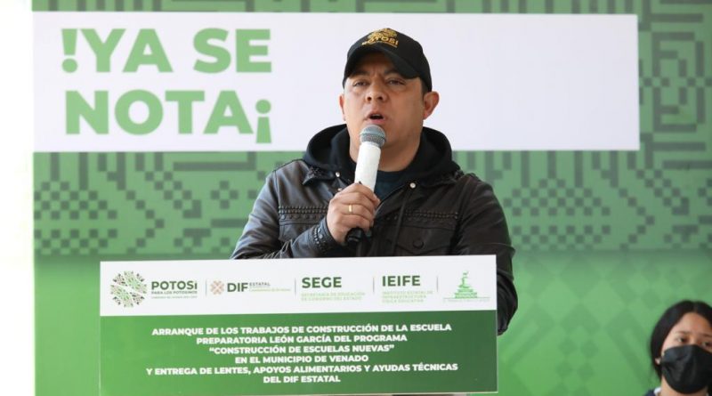 Venado, San Luis Potosí.- La transformación de San Luis Potosí, avanza hacia todas direcciones y a todos los rincones del Estado, con la educación como catalizadora del progreso para fortalecer los niveles de bienestar social y crecimiento económico, con acciones como el arranque del Gobernador Ricardo Gallardo Cardona a las obras del nuevo edificio de la preparatoria León García dentro del programa “Construcción de Escuelas Nuevas” con una inversión de 10.6 millones de pesos.