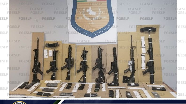 TAMUIN. – Tras llevar a cabo un cateo en un inmueble en el municipio de Tamuín, la Fiscalía General del Estado de San Luis Potosí (FGESLP) por medio del trabajo de agentes de la Policía de Investigación (PDI) y Peritos, logró el aseguramiento de 8 armas de fuego largas, 22 cargadores, 584 cartuchos, 8 fornituras y 1 un chaleco táctico.