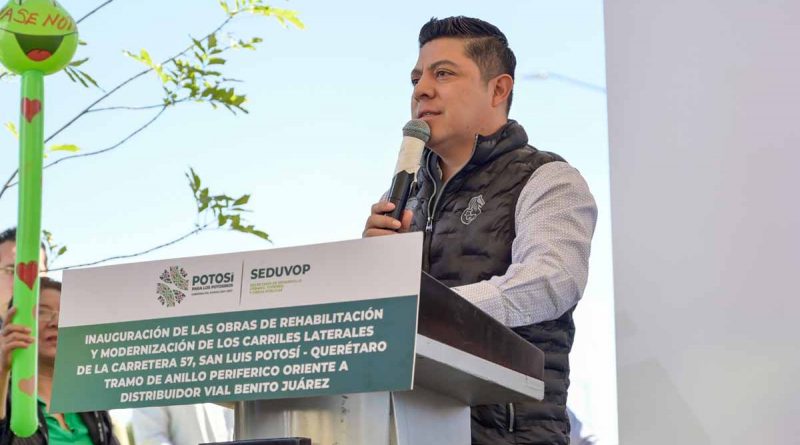 Este día, el Mandatario potosino inauguró la rehabilitación integral de los carriles laterales de la carretera 57 Querétaro – San Luis Potosí, en el tramo que va del Circuito Potosí Oriente al Distribuidor Vial Benito Juárez, principal acceso desde el centro del país a la ciudad capital y que tiene como particularidad conectar a la mancha urbana y al conurbado municipio de Soledad de Graciano Sánchez con el principal polo industrial del Estado.