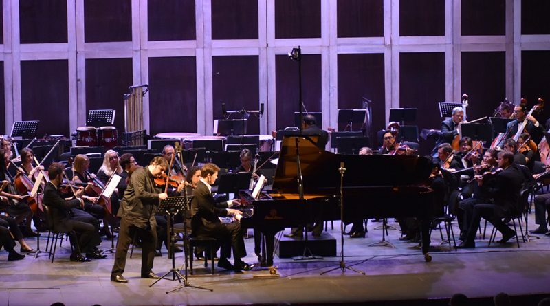 Posteriormente, aparecieron en el escenario Graf Mourja y Vladimir Petrov para interpretar con un ensamble de cuerdas de la OSSLP, el concierto para violín, piano y orquesta de cuerda en Re Menor de Felix Mendelssohn, donde destaca el trenzado de los sonidos de los instrumentos, que otorga una atmósfera de relajación espiritual.
