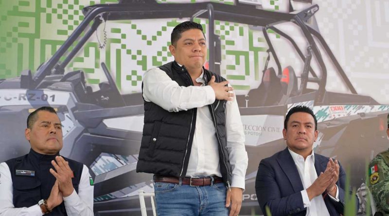 Junto al secretario general de Gobierno, J. Guadalupe Torres Sánchez y al titular de la CEPC, Mauricio Ordaz Flores, el Gobernador Ricardo Gallardo, hizo entrega simbólica de una camioneta equipada para atender con mayor eficacia las tareas de emergencia que se presenten, además de dos remolques cama baja, paquete de herramientas, bomba tragasólidos, motosierras, vehículo defender can-am y equipo diverso para protección personal.