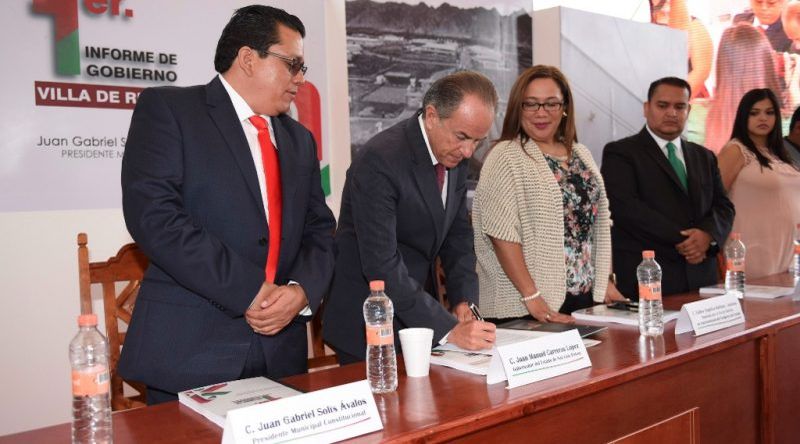 Villa de Reyes, S.L.P.- Al asistir al Primer Informe de Gobierno del municipio de Villa de Reyes que preside Juan Gabriel Solís Ávalos, el Gobernador del Estado, Juan Manuel Carreras López, manifestó que el trabajo coordinado de los tres niveles de gobierno y la suma de esfuerzos de la sociedad civil, se busca tener un Villa de Reyes y un San Luis Potosí más grande, más fuerte, más justo y más próspero.